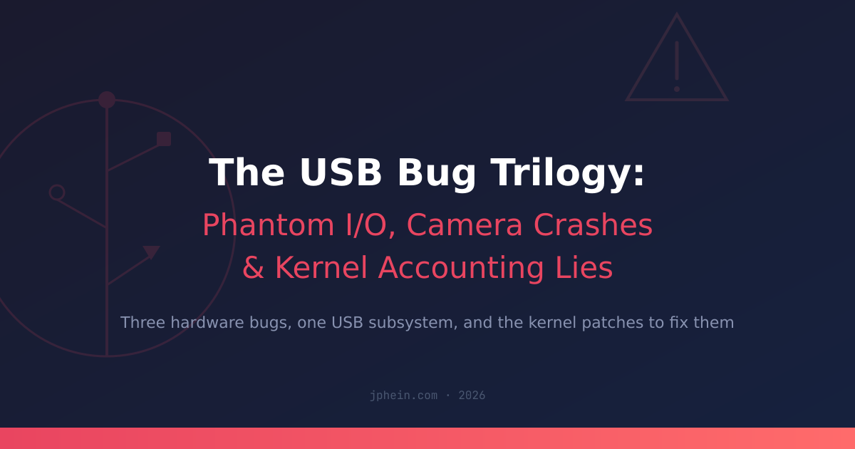 I run a homelab with a dozen VLANs, 20+ monitored hosts, and a desktop workstation that doubles as my daily driver for development and gaming. Over the past few months I’ve hit four separate USB bugs on Linux that each took hours to diagnose — and they’re all related to how the Linux kernel handles Read more about The USB Bug Trilogy: Phantom I/O, Camera Crashes, and Kernel Accounting Lies[…]